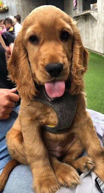 This curly dressed pooch is a real cutie.