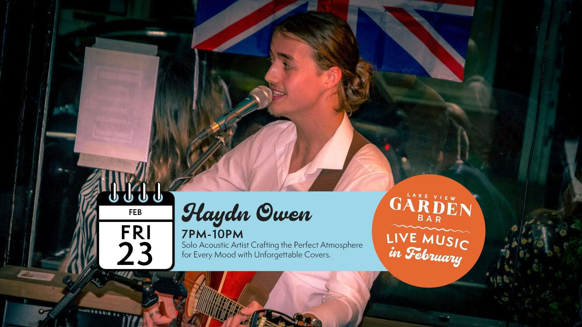 Haydn Owen 23rd February from 7pm at Lake View Garden Bar in Bowness On Windermere