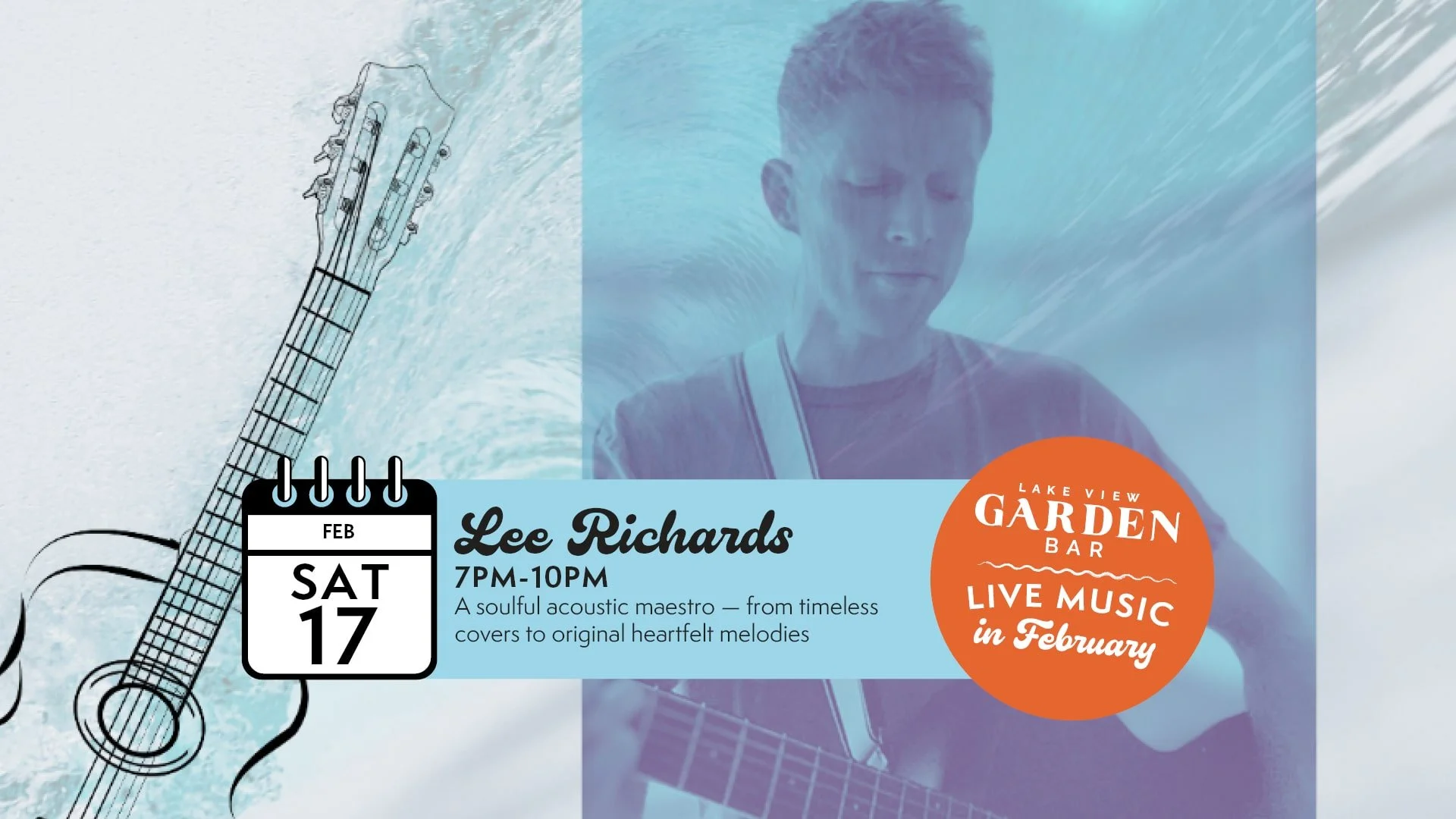 Lee Richards 17th February from 7pm at Lake View Garden Bar in Bowness On Windermere